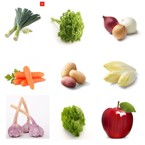 Poireaux, Carottes, Pommes de terre, Endives, Oignons, 1 botte d'aillet (ail frais), Salade, Persil, Pommes